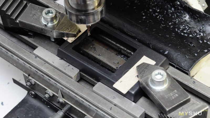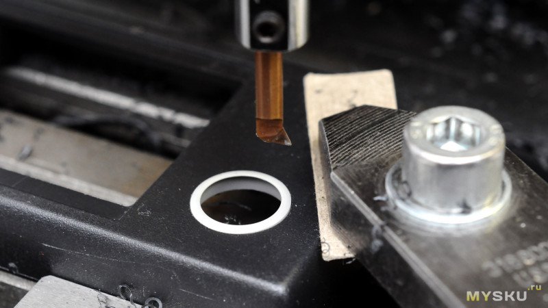 Из корпуса пульта я вырезал кольцо, которое обрамляло джойстик, обточил на оправке его внешнюю поверхность и вставил в отверстие в своем корпусе Z32. Отверстие точно подогнано по диаметру с помощью расточного резца.
