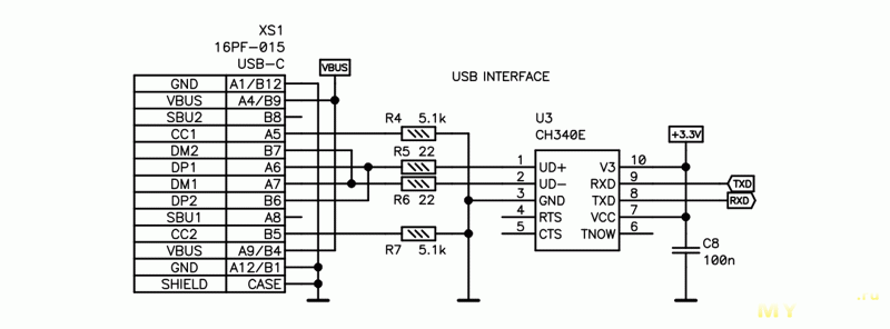 Несмотря на то, что процессор имеет встроенный физический порт USB, я все равно использую внешний мост USB-UART. Обычно я делаю гальваническую развязку USB, там наличие моста оправдано. Но в данном случае устройство питается от USB, поэтому развязки нет. Но я все равно применил мост. Потому что разобраться с программированием USB – задача крайне трудная. Все эти дескрипторы, эндпоинты… Стоит ли оно того, если есть крошечная и дешевая CH340E, где уже все сделано до нас?
