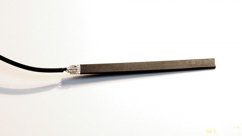 В результате получилась практически плоская конструкция, над платой ничего не выступает, кроме паек. Плату поместил внутрь термоусадки, получился плоский щуп сечением 5.3 х 1.6 мм.