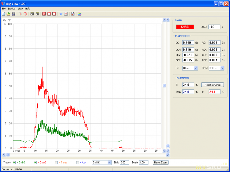 Для логгирования данных и управления устройством быстренько набросал программу на компьютере.
