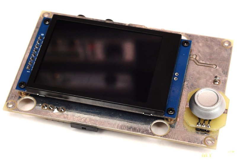 При разработке плат управления, на которых стоят кнопки, дисплей, энкодер и прочее, всегда является проблемой согласование всех компонентов по высоте. Если применять дисплей без платы, и он будет лежать прямо на плате управления, тогда эта плата должна быть расположена очень близко к передней панели. Для кнопок остается слишком мало места по высоте. Хотя варианты тоже есть, можно применить, например, низкие мембранные переключатели. Дисплей, конечно, можно приподнять над платой, насколько это позволит шлейф, но тогда для него потребуется какое-то крепление.