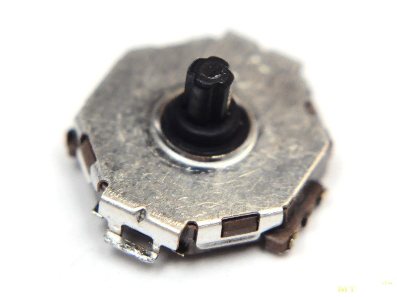 Производитель и тип джойстика остались неизвестными. Поиск по картинке дал результат, что точно такой же джойстик использовался в телефоне Nokia 6600. Джойстик имеет 4 кнопки, которые срабатывают при наклонах. И еще одну центральную кнопку, гораздо более тугую, которая срабатывает при нажатии.