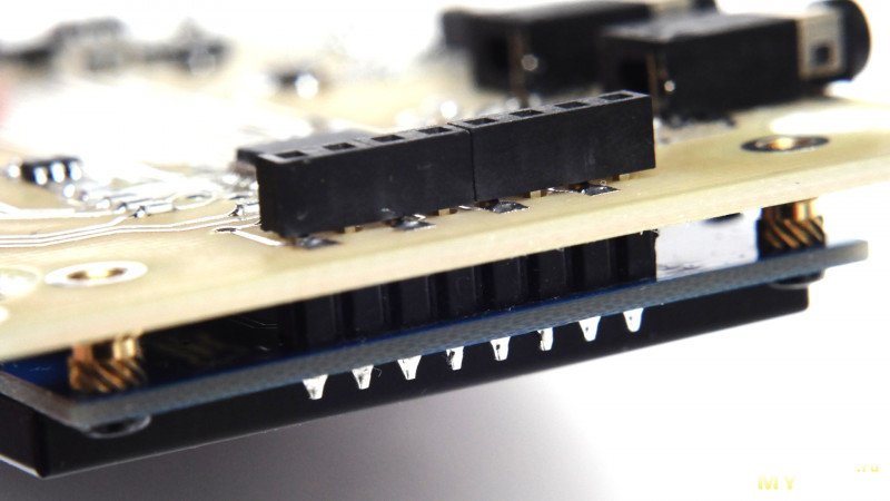 Если применять дисплей с собственной платой, тогда он будет достаточно высоко приподнят над платой управления. При подключении через пару разъемов PLS – PBS расстояние между платами получится 11 мм (2.5 мм + 8.5 мм). Это слишком много, придется применять кнопки с длинными толкателями. Есть более низкие версии разъема PBS (5 мм), но все равно расстояние между платами получается слишком большим. Подходящее решение я увидел на платах старых жестких дисков. Там штырьки PLS проходили сквозь отверстия в плате, а на другой стороне был припаян низкий разъем PBS в SMD исполнении. Для него все равно, с какой стороны вставляются штырьки. Такие разъемы нашлись на Aliexpress (к сожалению, ссылка больше не работает). Данный вариант соединения плат позволяет получить между ними очень малое расстояние, вплоть до толщины пластика в разъеме PLS (2.5 мм).