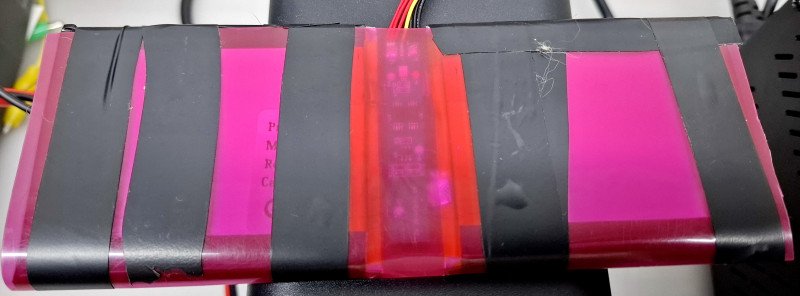 Синей изоленты под рукой не оказалось, пришлось замотать чёрной, но кошачья шерсть должна добавить надёжности ))Приляпал в ноут на двусторонний скотч: