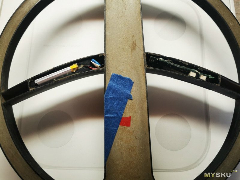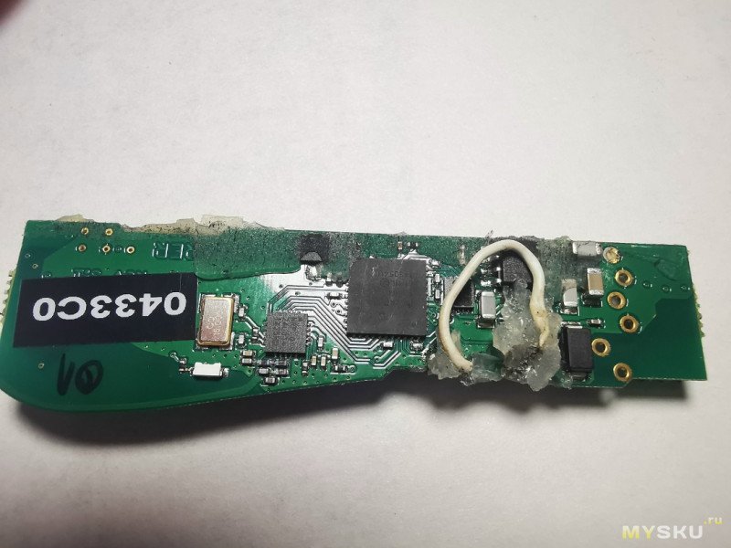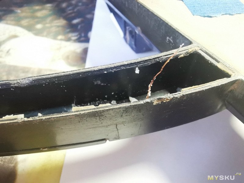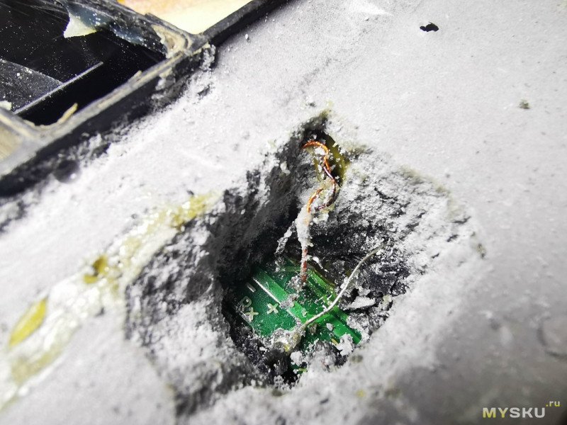 Вынимаю плату и отлаживаю. Окошко треснуто и оторван провод на зарядный пин. Без сноровки и подготовки, припаять не повредив пластик, проблематично.