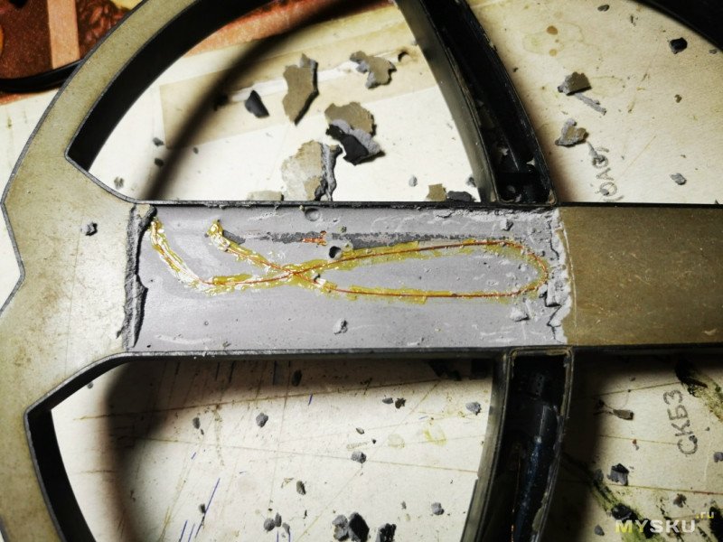 Предыстория: Владелец заменил сам акб. Через время катушка перестала видеть цели, после пинка чёт начинала работать снова. Поглотив из интернета информацию, вскрыл отсек с платой, просушил якобы, и снова посадил на герметик. Чегой-то это видимо не помогло, и принято было решение отправить в магазин на ремонт. Там вскрыли и открестились с пояснением, что залит герметик и ремонтировать не станут.