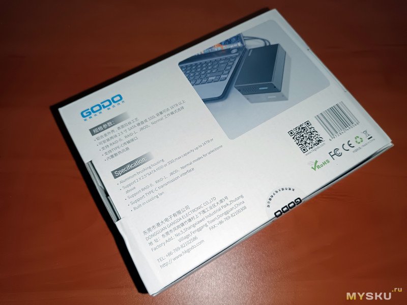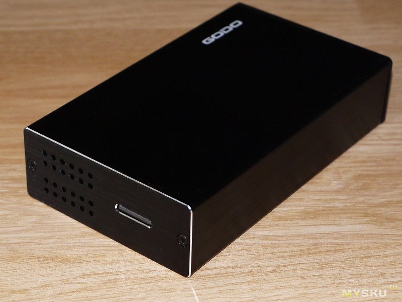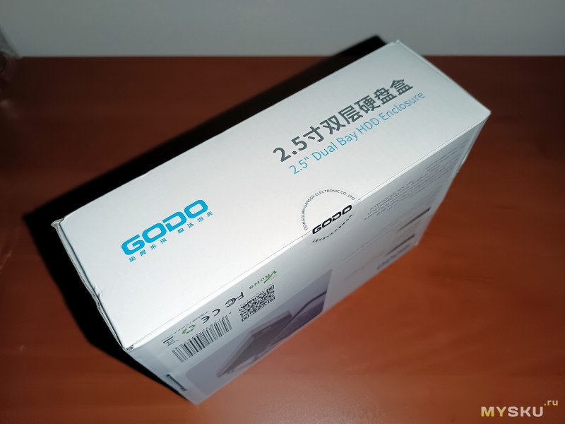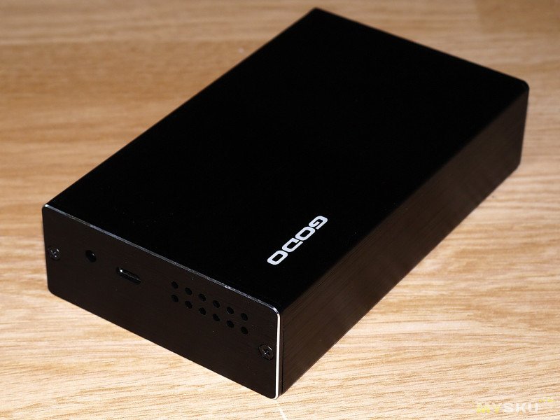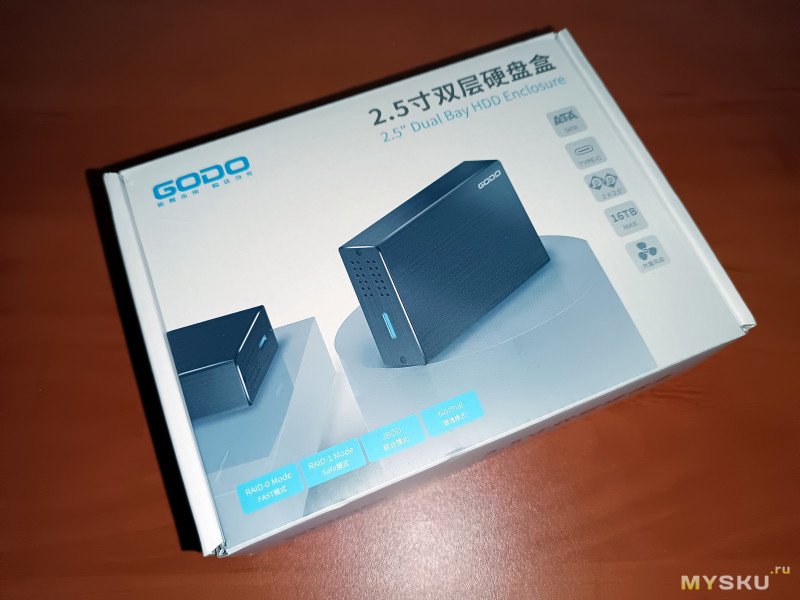 RAID-корпус GODO куплен на Алике ровно год назад за 15 долларов. Тут обещают два SATA3 слота под SSD/HDD, передачу данных через порт Type-C, внешнее питание +5В и поддержку четырех режимов RAID, а именно RAID 0 / RAID 1 / JOBD / NORMAL.