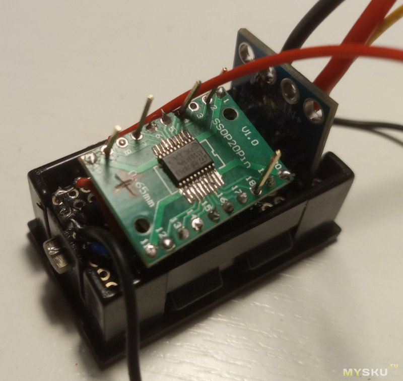 Ампервольтметр собирался в качестве эксперимента, на скорую руку, без изготовления платы — на мекетке + плата переходник для контроллера + впаянная в макетку плата INA226. Выглядит конечно не сильно презентабельно, но, главное, что быстро собирается и всё работает. ))