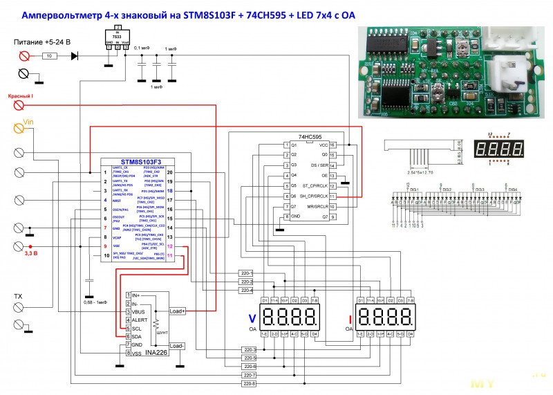* Скетч для вольтметра на STM8S103F3 + INA226 + семисегментнтный LED на 4 разряда с ОА