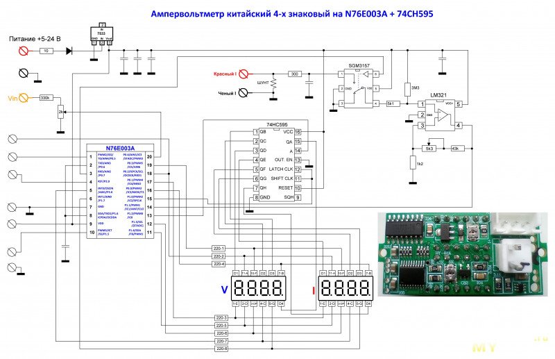 Схема оригинального китайского 4-разррядного ампервольтметра: