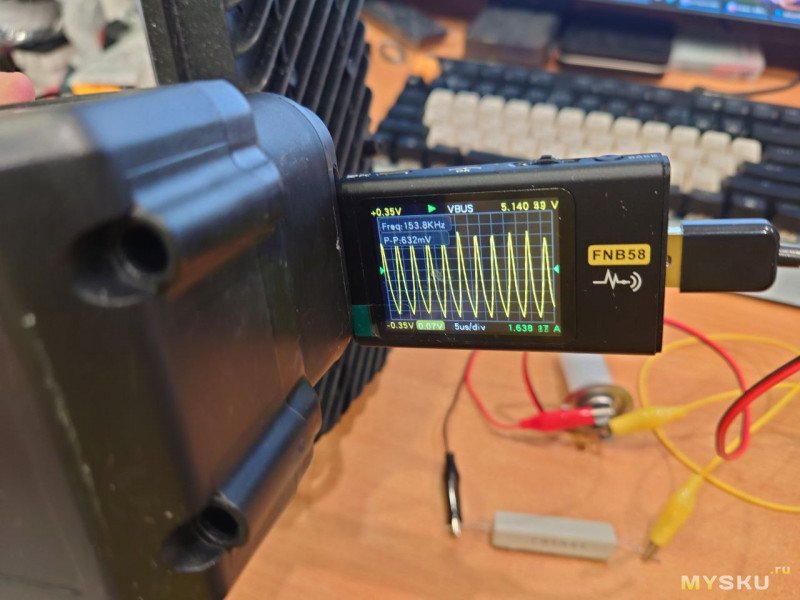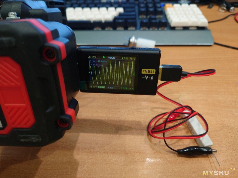 Но частота тоже достаточно высокая 140кГц. Пульсации на USB высокие, но в целом если припрёт можно будет им воспользоваться. К тому же на удивление 3А держит (но с большой просадкой напряжения). При большем токе уходит в защиту.