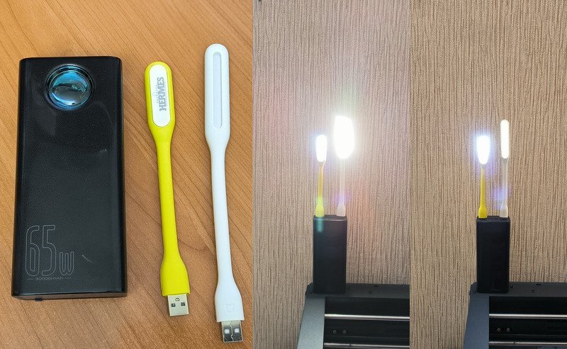 1. Повербанк с быстрой зарядкой и USB-фонарик (например, известные от Xiaomi или даже нонейм за 60 рублей)Ж