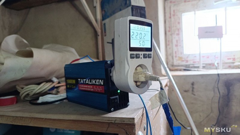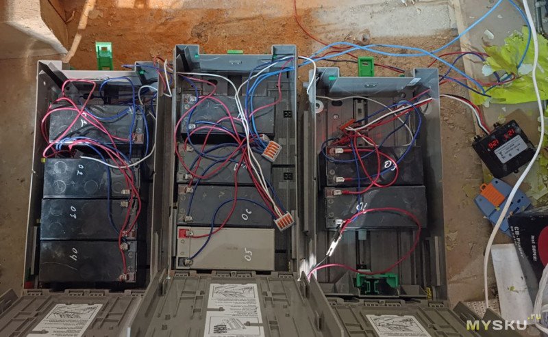 Еще есть «автомобильный» инвертор 24В и 220В с синусом на выходе на 1000Вт китайских, который при отключении сети может запитать холодильник или котел или зарядить телефоны и ноутбукии и роутеры поддерживать на связи. Но это редко, включаю его несколько раз в год вручную, а так он и аккумуляторы стоят на «всякий случай», в дополнение к генератору.