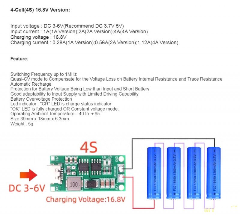 Эта плата повышает напряжение 5v от внешнего источника питания, и управляет зарядкой аккумуляторов: