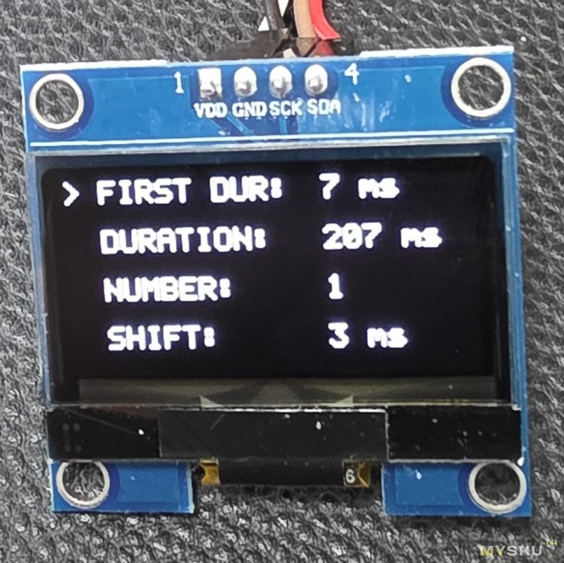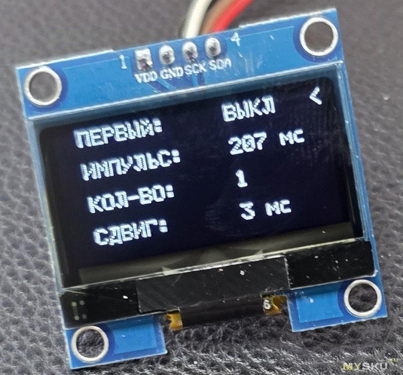 Вот так выглядит отключение импульса прогрева (то есть при включенном импульсе мы видим цифру длительности, при выключенном надпись ВЫКЛ на русском или OFF на английском):