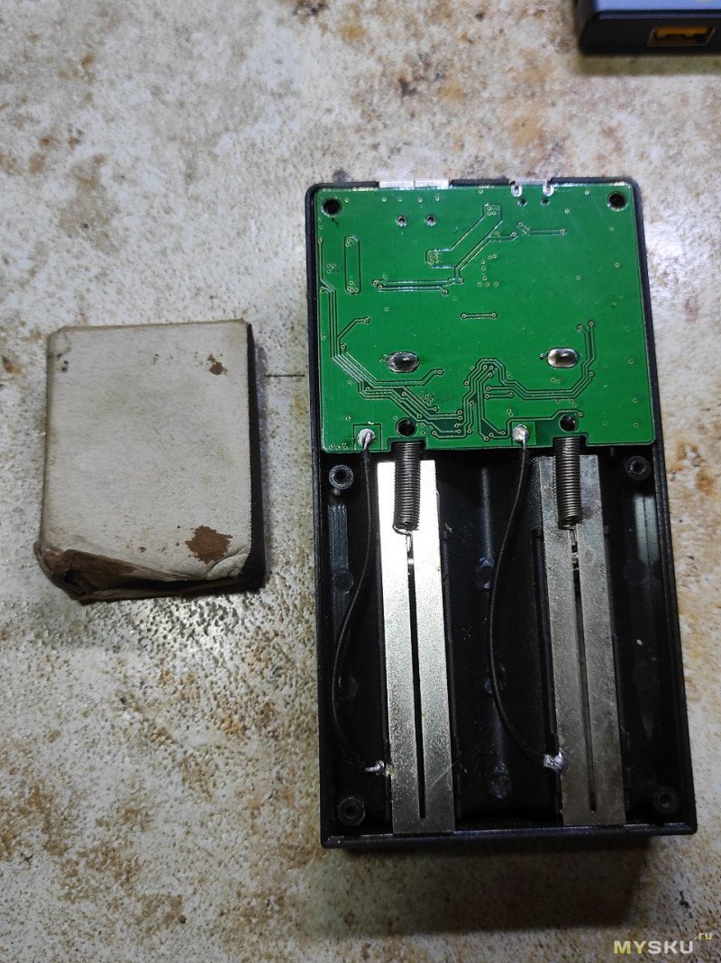 Измеряю выход «кроны» — 12В. Как-то многовато. Ставлю на заряд аккумулятор, через минуту из зарядки выходит дым и экран гаснет.