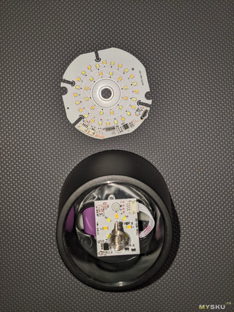 По традиции залезем внутрь — вдруг там не просто литиевая батарея с контроллером заряда, безымянным контроллером свечения и россыпью белых и желтых светодиодов (примерно как в обозреваемых ранее светильниках с датчиком движения)?..