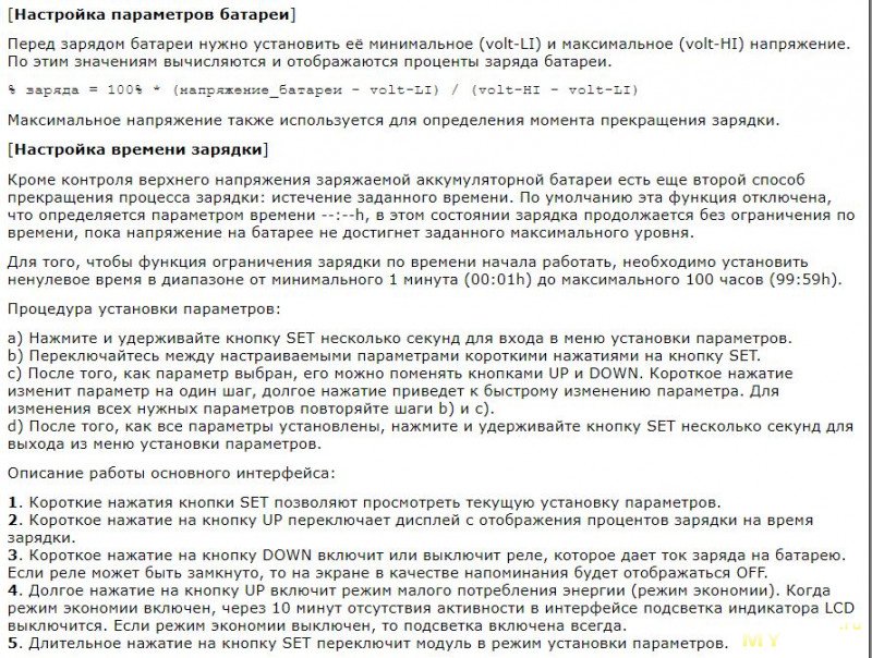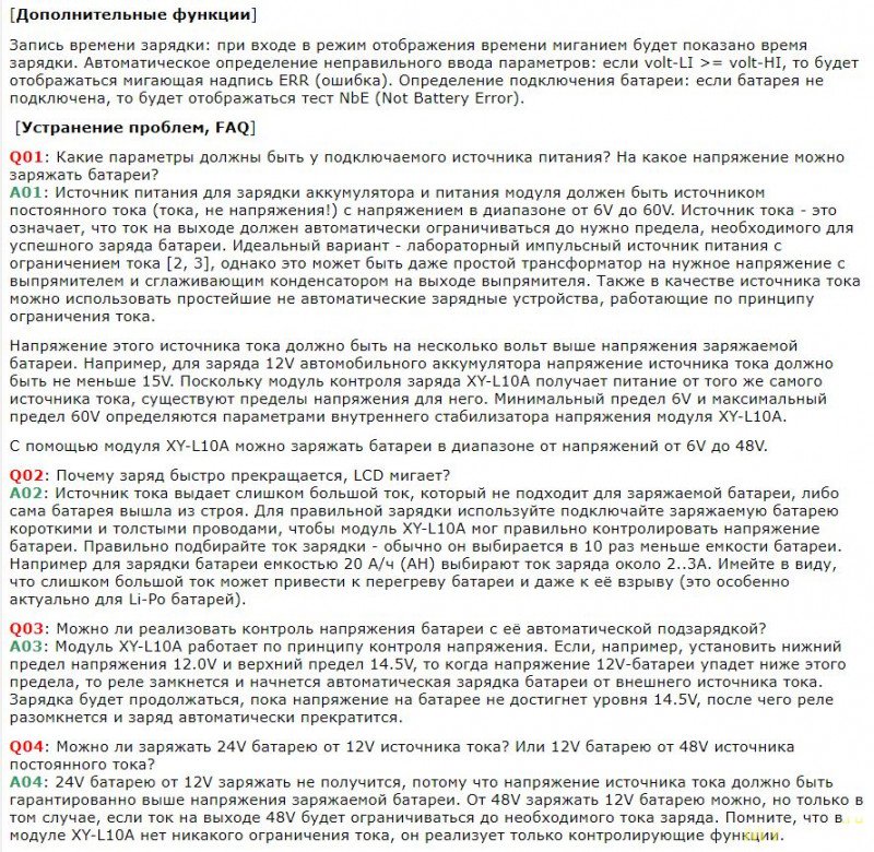 Блок управления зарядом АКБ XY-L10A имеет множество настроек, вот его описание на русском языке и продублировано ниже: