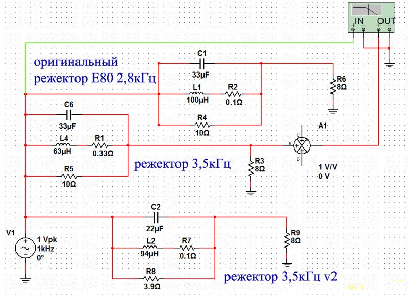 Затем решил изменить режекторный фильтр L2, C2 с 2,8кГц на 3,5кГц: