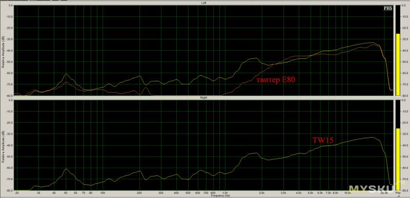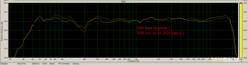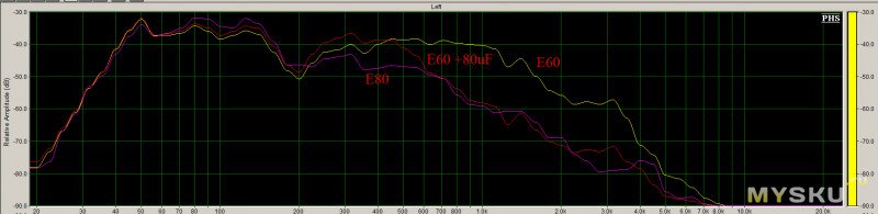 В сравнении с НЧ секцией Е80 вот что получилось (замер микрофоном):