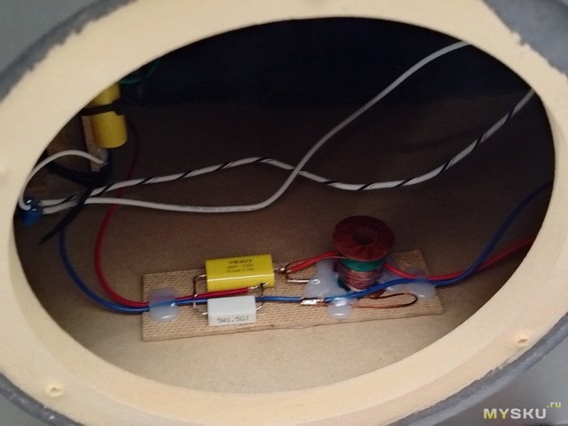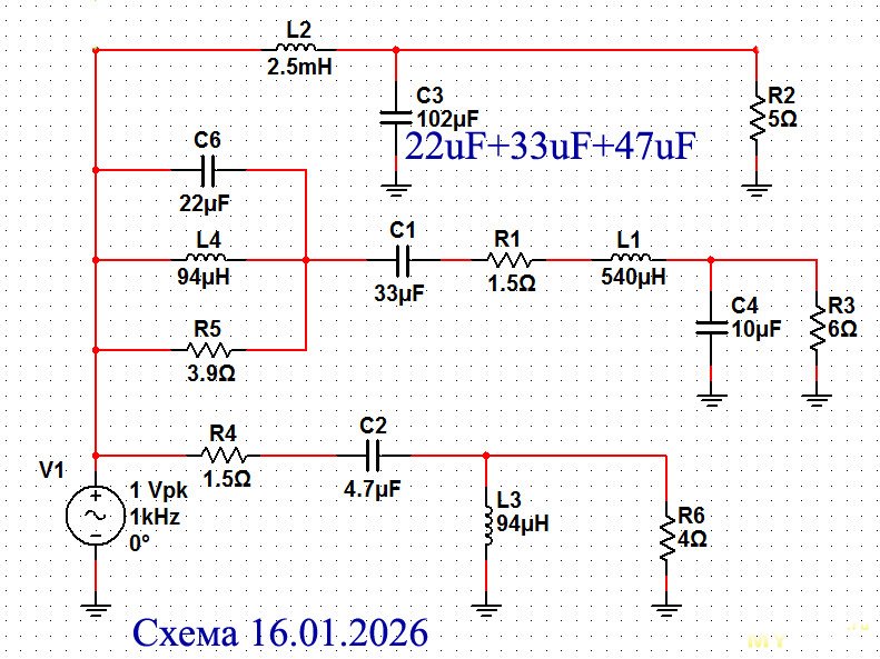 Но почему-то СЧ-ВЧ секции плохо стыковались по АЧХ, поэтому пришлось переиграть на фильтр 2-го порядка: