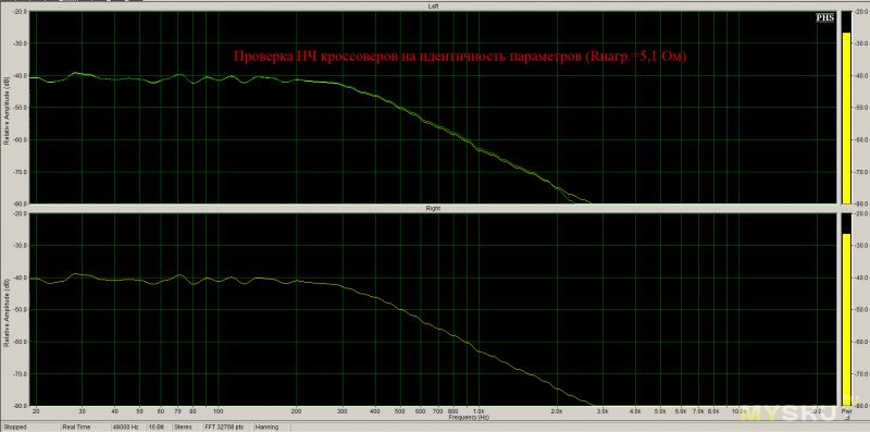Начиная с частоты 4кГц АЧХи совпали!И это несмотря на то, что один фильтр от 5кГц, а другой от 6кГц.