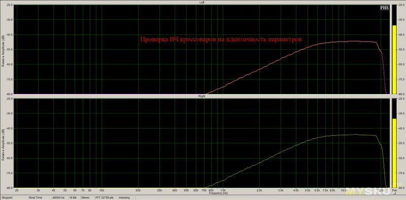 После сборки сравнение АЧХ кроссоверов ВЧ по напряжению: