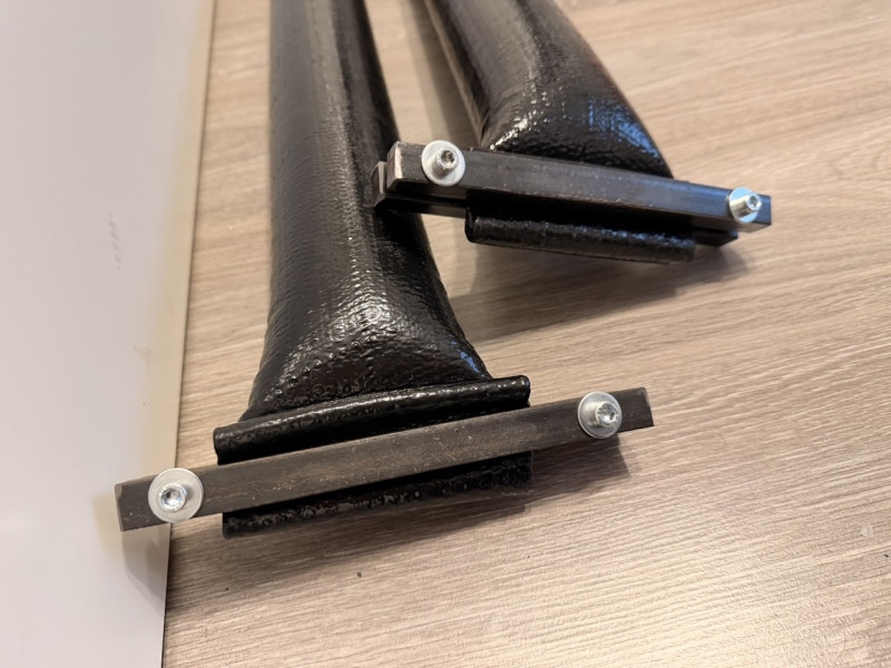 Складываю концы рукава втрое, для герметичности закладываю в сгиб толстый (2мм) двусторонний прозрачный «нано скотч», на который обычно лепят зеркала. Он пластичный, заполняет все поры и потом легко и без следа удаляется, в отличие от вспененного. Фиксируем клипсу имбусными болтами под шестигранник М6×60, затягиваем трещоткой.