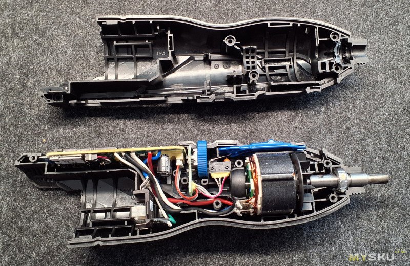 И если на китайщине при большой нагрузке просто падают обороты, и наглядно видно, что нагрузка слишком большая, то этот проксон пытается до последнего держать обороты, когда уже начинают гореть щётки и обмотки :)