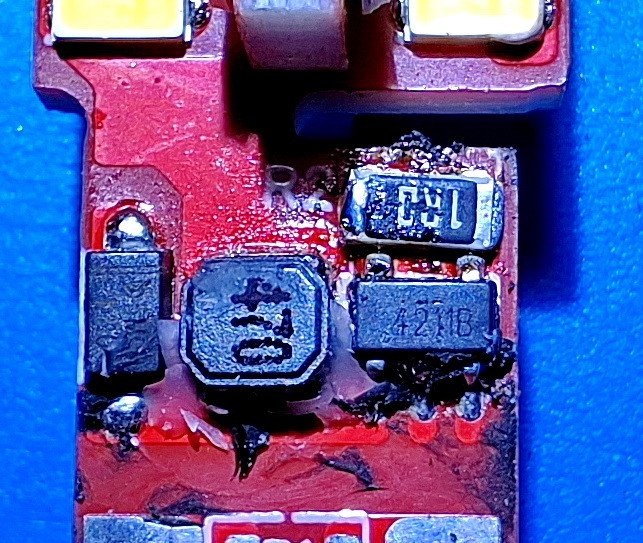 С одной стороны стоят конденсатор и диодный мост, с другой — диод, дроссель, токозадающий резистор и неизвестный (мне и временно) чип.Ищется только на китайском: