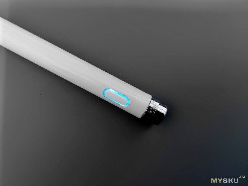 Итак, в моих руках оказался стилус, который не требует Bluetooth-подключения и работает с «андроидными и яблочными» гаджетами сразу после нажатия на кнопку питания. Если я правильно понял, его рабочий кончик представляет собой излучающую антенну с высокочастотной генерацией. А тач-скрин принимает импульс, срабатывая в точке касания экрана.