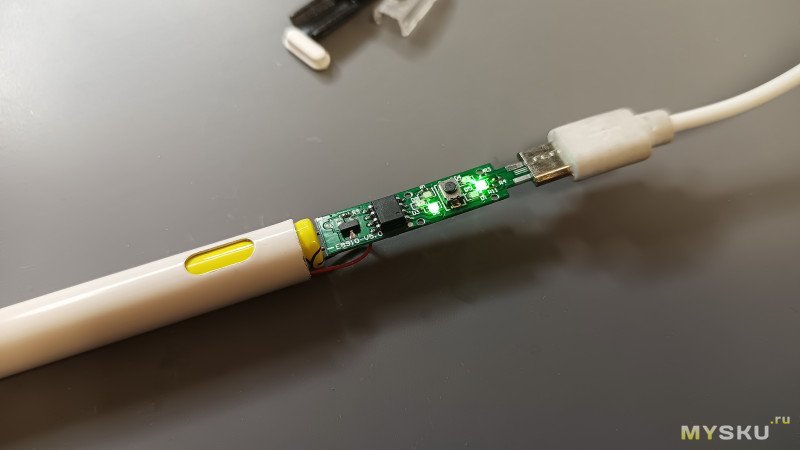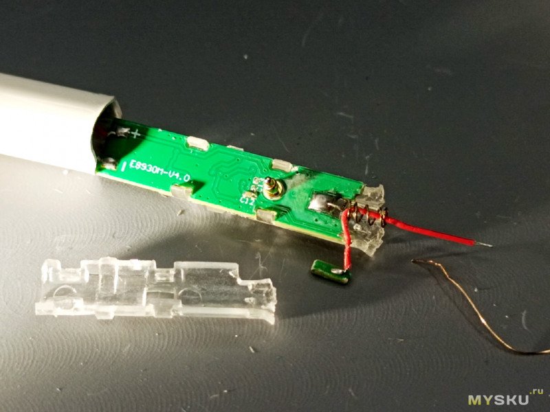Что касается неисправности. Скорее всего, проблема крылась в наконечнике. Причиной неработоспособности могли стать частые падения. Владелица это подтвердила: стилус падал на кафель и прочие поверхности много-много раз. В 90% случаев электроника (чипы) могут выдержать удар, а вот места соединений не всегда.
