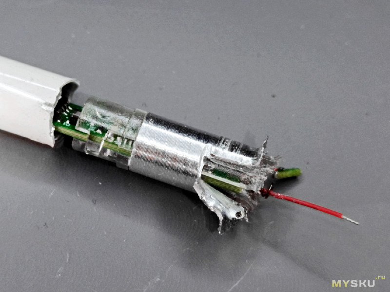 Сперва разматываю верхнюю катушку. Удивительно, но это стальная проволока, причем омедненная. Хотя пластиковый кончик можно было не ломать (но кто ж знал). После чего получилось извлечь прозрачный цилиндр и разъединить его половинки, разжав защелки.