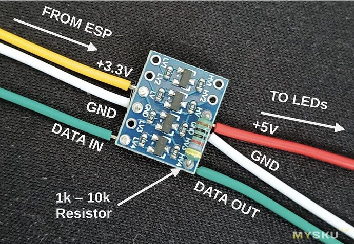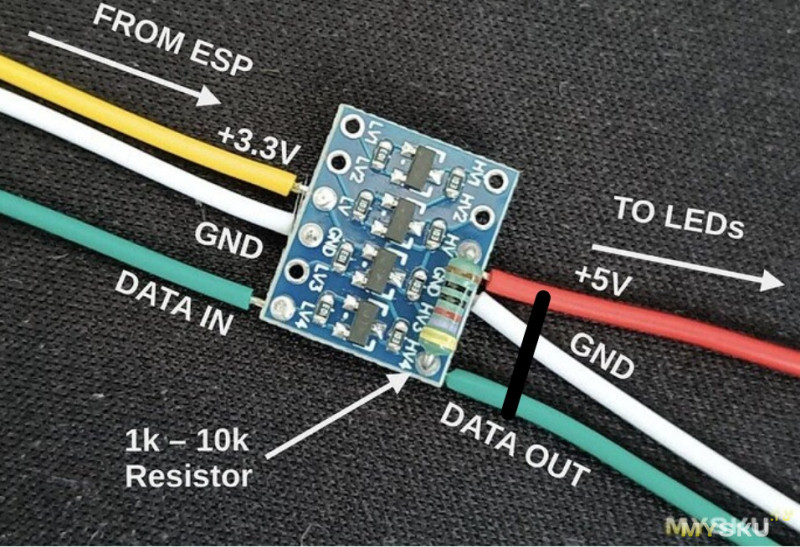 3. Попробовать, как советует WLED, добавить резистор 33-200 Ом в разрыв дата-линии.