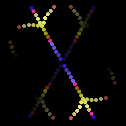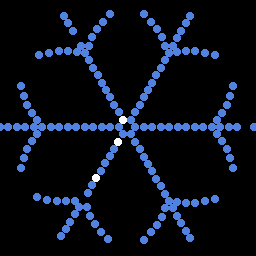 Кто помнит, во времена VGA графики был достаточно популярен во всяких демках алгоритм генерации плазмы, когда разноцветные пятна причудливо движутся и смешиваются, как какие-то волны или масляные пятна на воде. Википедия. Вот взял какой-то готовый алгоритм из инета, попытался его подогнать. Получилось так себе, на мой вкус. В силу малого «разрешения» снежинки, плазма не особо угадывается. Но как динамический эффект вполне сойдёт. Только похоже я где-то накосячил с зацикливанием, вроде как лагает в некоторые моменты. Ну и ладно.