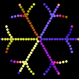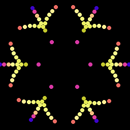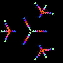Что-то про вращающуюся палитру вокруг кончиков лучей. Много вариаций, разные центры вращения, 3 или 6 областей.