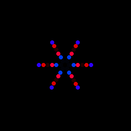 Две встречные волны по четным и нечетным лучам снежинки. Навеяно машиной времени из «Назад в будущее». Там было три сходящихся луча. Ну а тут удвоенная версия :) Мне особенно нравится в варианте чередующихся черного и зеленого.