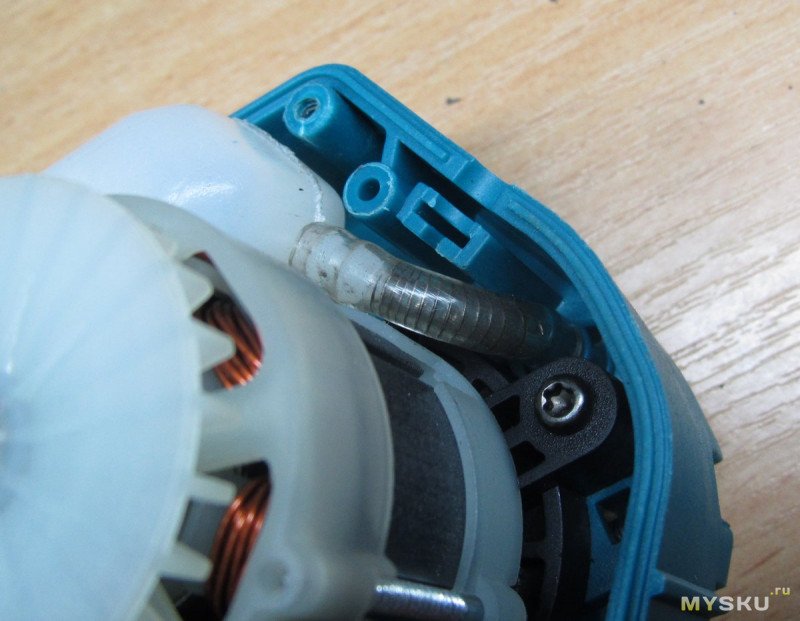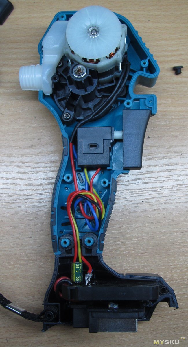Больше снаружи смотреть нечего, так что разбираем. Защита руки прикручена винтами в пластик — я бы всё же шурупы применил, ну да ладно. Остальные таки шурупы, головка Т10. Мотор действительно брушлесс