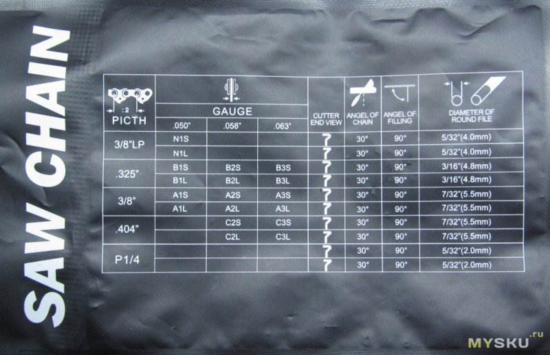 Цепь упакована в пакетик с весьма полезной (на мой взгляд) табличкой