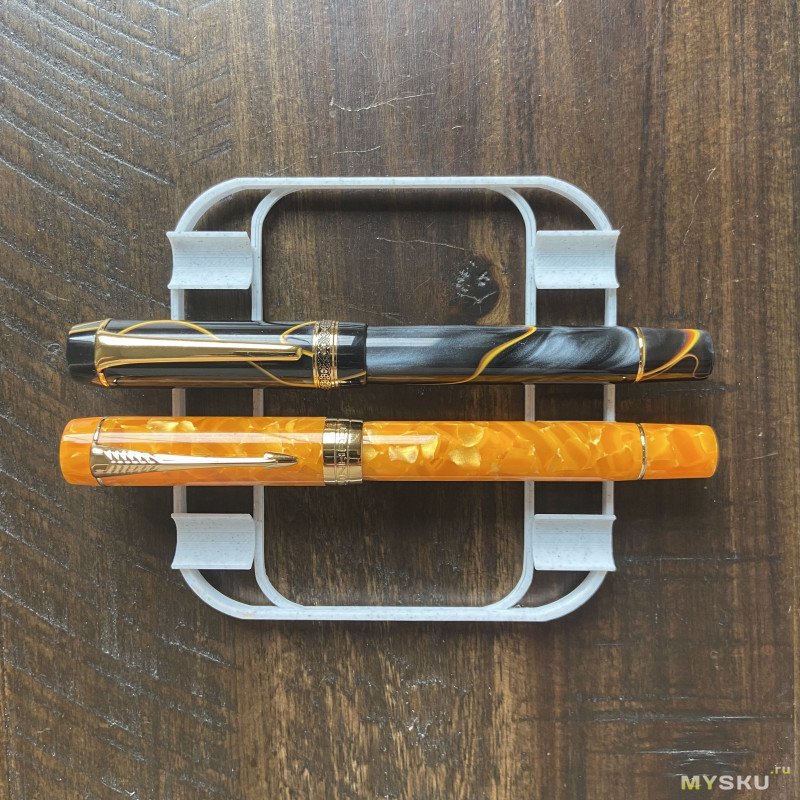 И это немудрено — обе ручки, в свою очередь, являются клоном Parker Duofold — флагманской модели. И как мне кажется, Kaigelu подошли к своим ручкам чуть более креативно — изменили, как минимум, клип (не стали копировать паркеровскую стрелу) и дизайн центрального колечка.
