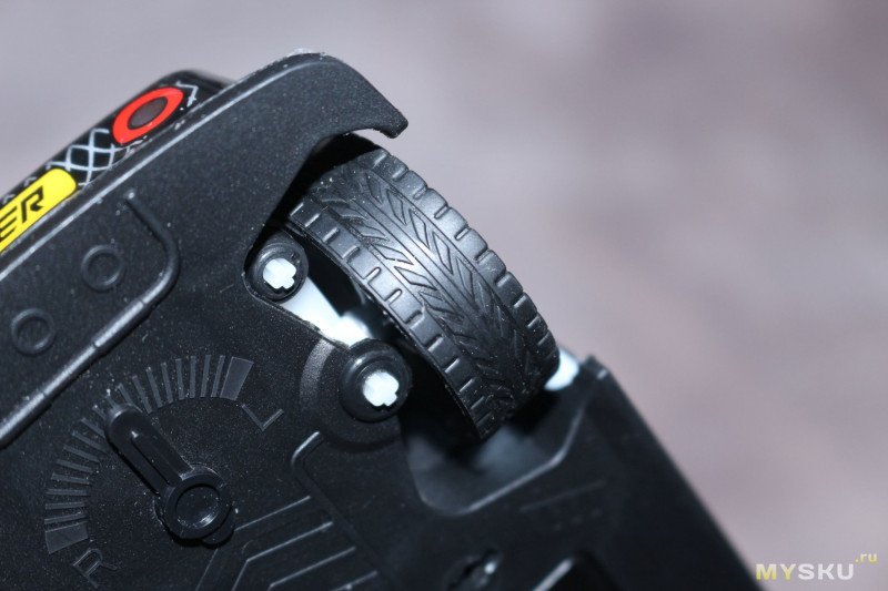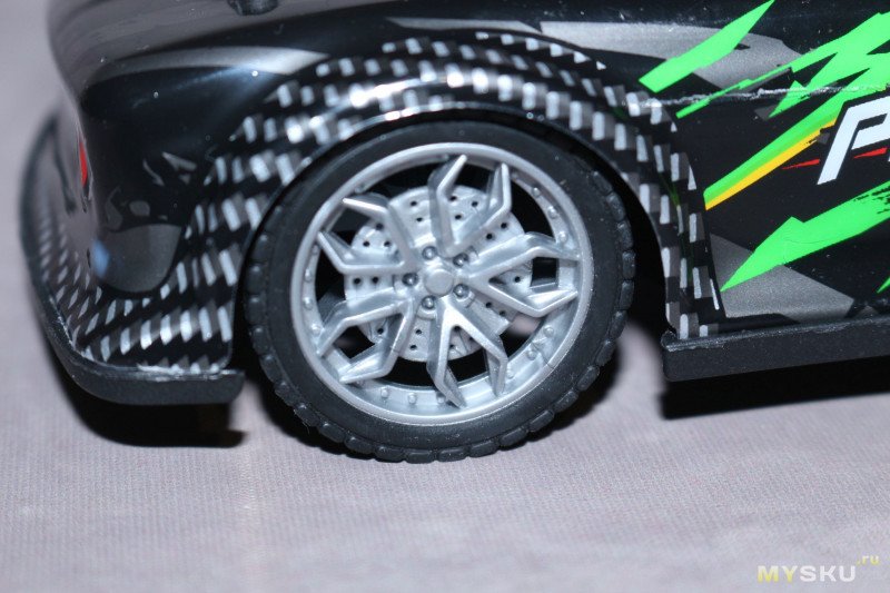 На колесных дисках сымитированы дисковые тормоза, шины резиновые.