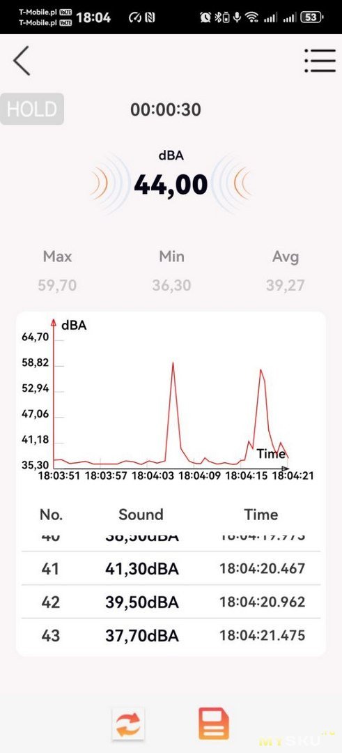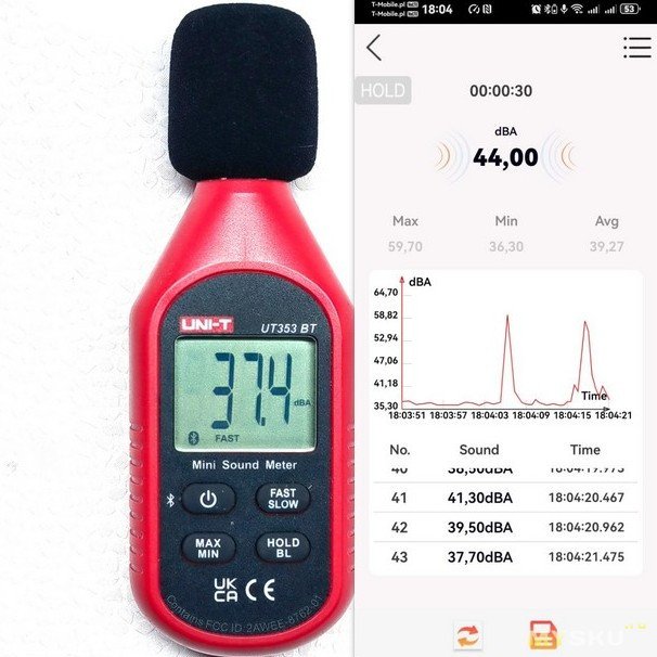 Прибор измеряет шум начиная с 30 дБ, так что в очень тихих помещениях он может не уловить самые слабые звуки.