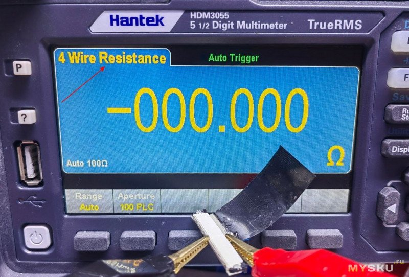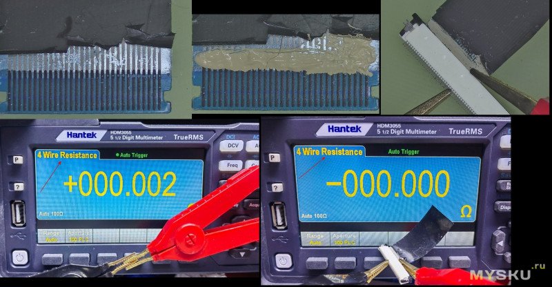Шлейф был закорочен токопроводящим клеем по периметру, чтобы можно было подключиться к нему кельвиновыми «крокодилами».