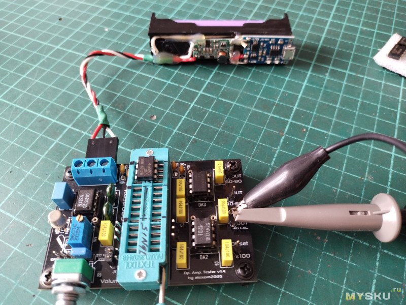 С тех пор стенд много раз выручал. С помощью него удаётся определить, что на самом деле прислали. Чаще всего присылают LM358, 4558 или, например, ОУ без полевиков на входе, хотя остальные параметры соответствуют. Справедливости ради, иногда удавалось купить на Али оригинальные ОУ или хорошие китайские клоны.