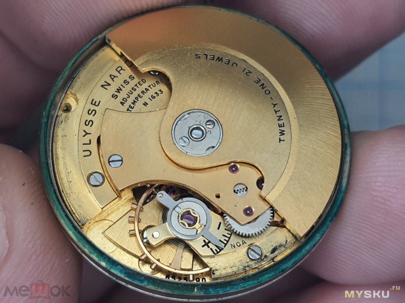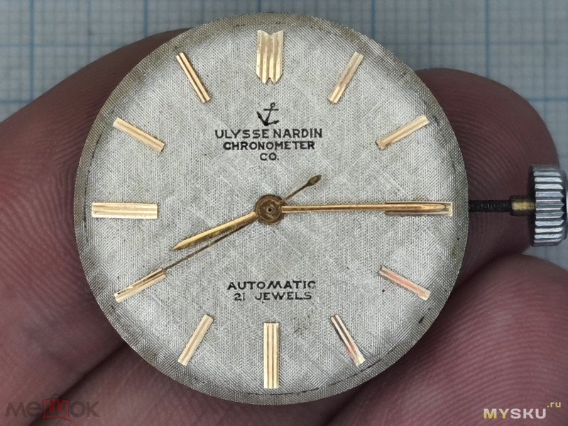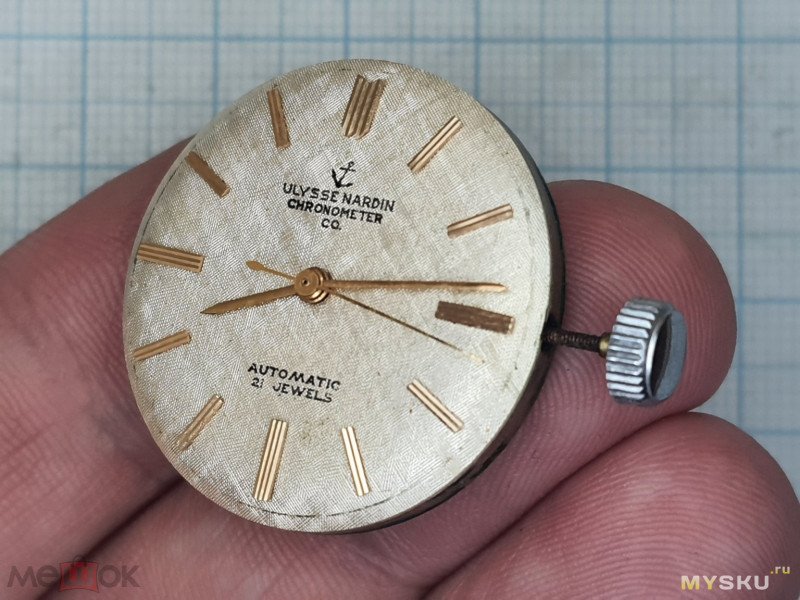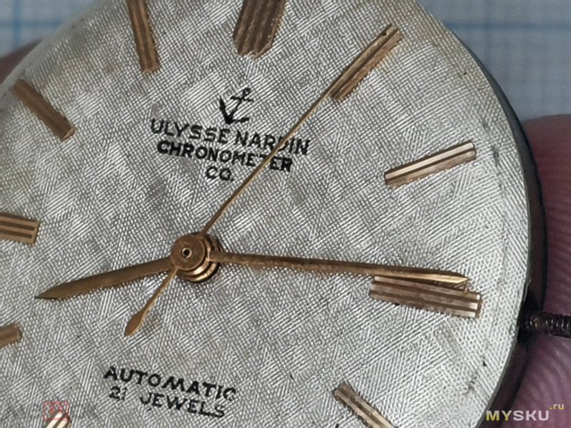 Где-то в это же время попался мне рабочий механизм с циферблатом и стрелками от часов Ulysse Nardin Chronometer СО. Вот в таком виде