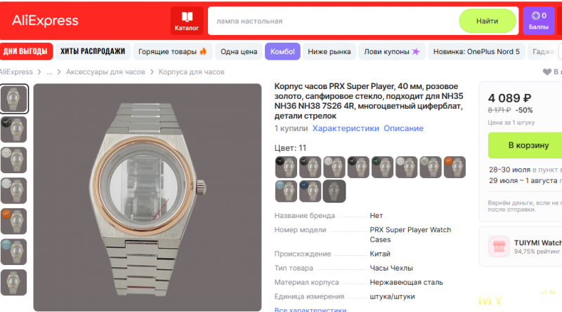 Найти оригинальный корпус для данных часов думаю будет не реально, поиски на отечественных сайтах онлайн-купли-продаже подходящих вариантов, не увенчались успехом. По этому было принято решение «сделать котлету» из не оригинальных запчастей, а именно подобрать что либо «посовременней» у братьев китайцев. Перерыв кучу вариантов на AliExpress был выбран такой вариант (обошелся порядка 3,5 тр).