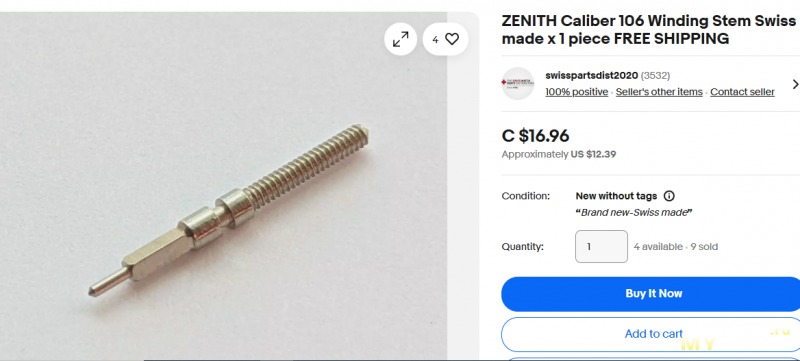 Помимо этого, одна из стрелок поломана, будем подбирать что-либо от других часов. Заводной ключ найти в нашей стране не получилось и пришлось приобретать в Канаде на Ebay через недешевые услуги посредника, сам заводной вал стоил порядка 13$ с бесплатной доставкой в США. По итогу заводной ключ мне обошёлся порядка 4 тр. из-за заоблачного курса и услуг посредника, ну да ладно, другой альтернативы я не нашел.