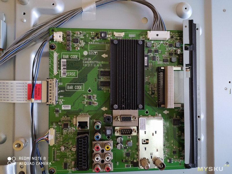 T-Con плата V400HJ6-PE1 расположена в нижней части корпуса — я уже научен, поэтому внимательно осматриваю платы на предмет окислов.