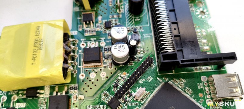 Материнская плата HK.T.S2T512CP639 объединяет блок питания, ШИМ-контроллеры, процессор, тюнер и микросхемы обработки аудио и видео сигналов. Горячая часть совмещена с холодной, что не очень хорошо. На процессоре радиатора нет.
