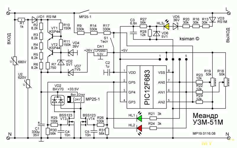интересно, как там рэле питается, не 5ю же миллиамперами. обмотка на сетевое напряжение там чтоль, а удержание через здоровый резистор?